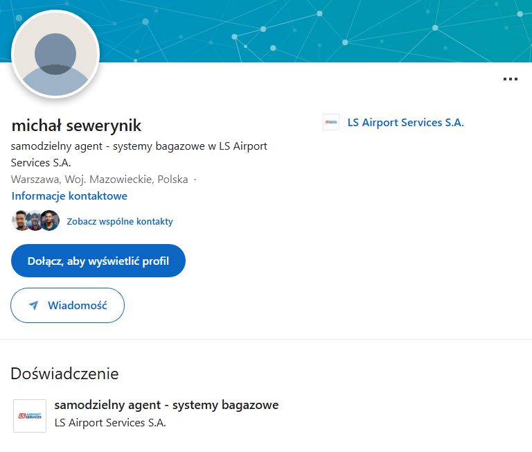Obecnie pracuje jako: Samodzielny agent – systemy bagażowe w LS Airport Services S.A.