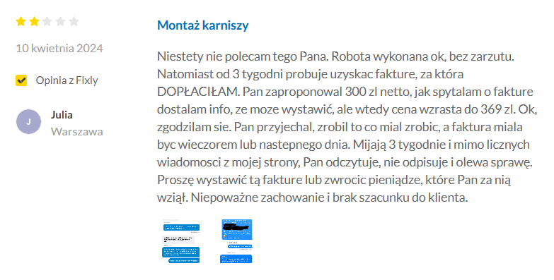 - Znika z zaliczką – po otrzymaniu przelewu kontakt się urywa, a usługa nie zostaje wykonana.