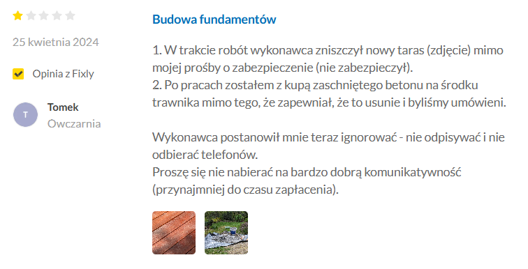 - Żąda pełnej zapłaty przed zakończeniem prac – mimo że wykonuje jedynie niewielki fragment zlecenia.