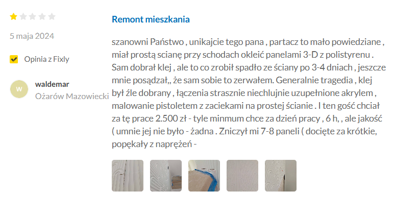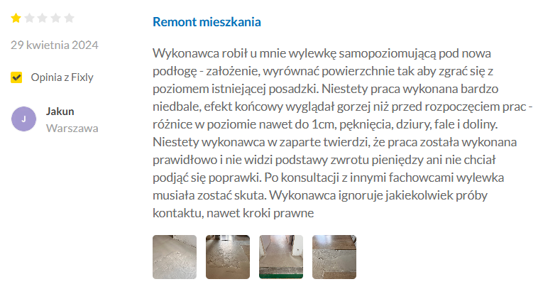 - Jakość wykonania jest bardzo niska – materiały odbiegają od deklarowanych, prace są niestarannie wykonane.